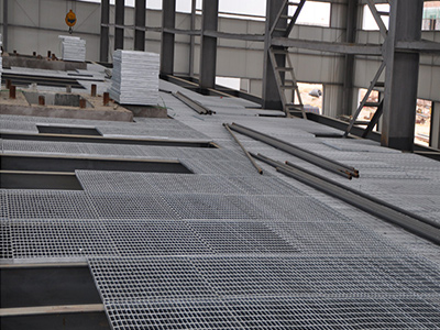 化工廠用鋼格板 鋼格板是用承載扁鋼和橫桿按照一定的間距進行正交組合,通過焊接或壓鎖加以固定的開敞式鋼構件;橫桿一般采用經過扭絞的方鋼、也可采用圓鋼或扁鋼,材質分為碳鋼和不銹鋼鋼格板主要用來做鋼結構平臺板、溝蓋板、鋼梯的踏步板、建筑物吊頂等。 簡介 ···